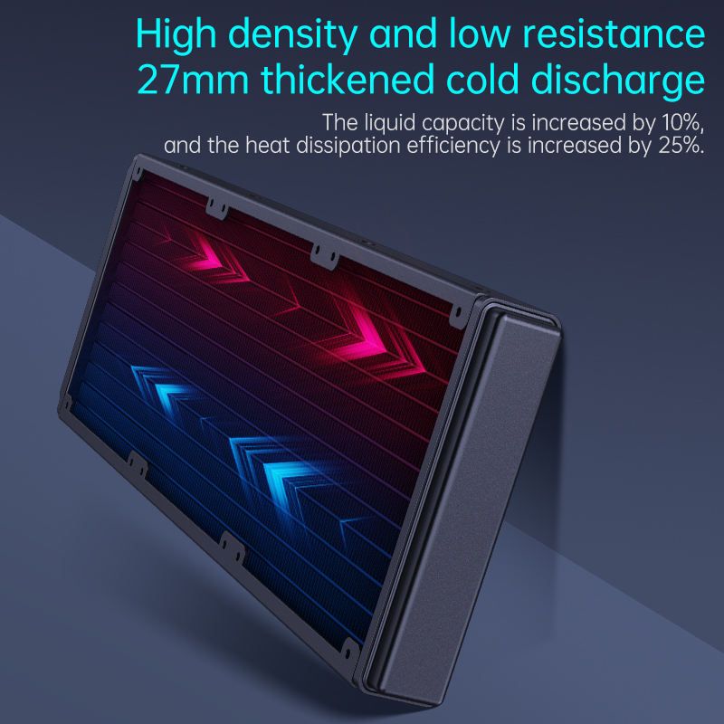 مبرد سائل عالي الأداء بحجم 360 ملم مع إضاءة ARGB و3 مراوح قوية. متوافق مع مقابس AM4 وAM5 وLGA1700. مثالي لأجهزة الألعاب والمعالجات القوية.